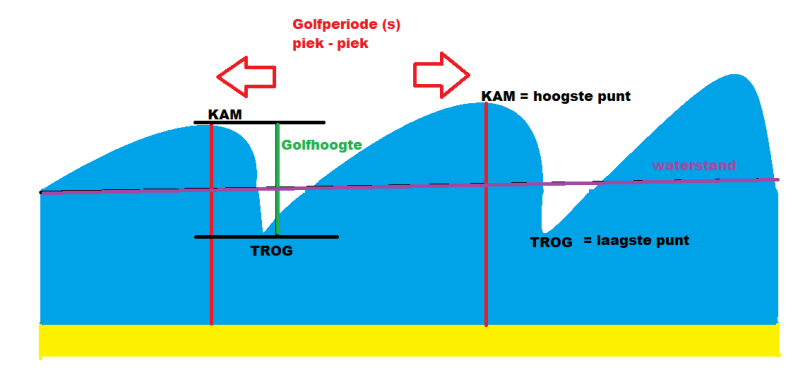 De golfhoogte staat NIET in verband met de golfperiode. De golfhoogte wordt volledig bepaald door de windkracht, duur van de windkracht en windbaan van het windveld, op voorwaarde dat de zee gevormd (in evenwicht) is.