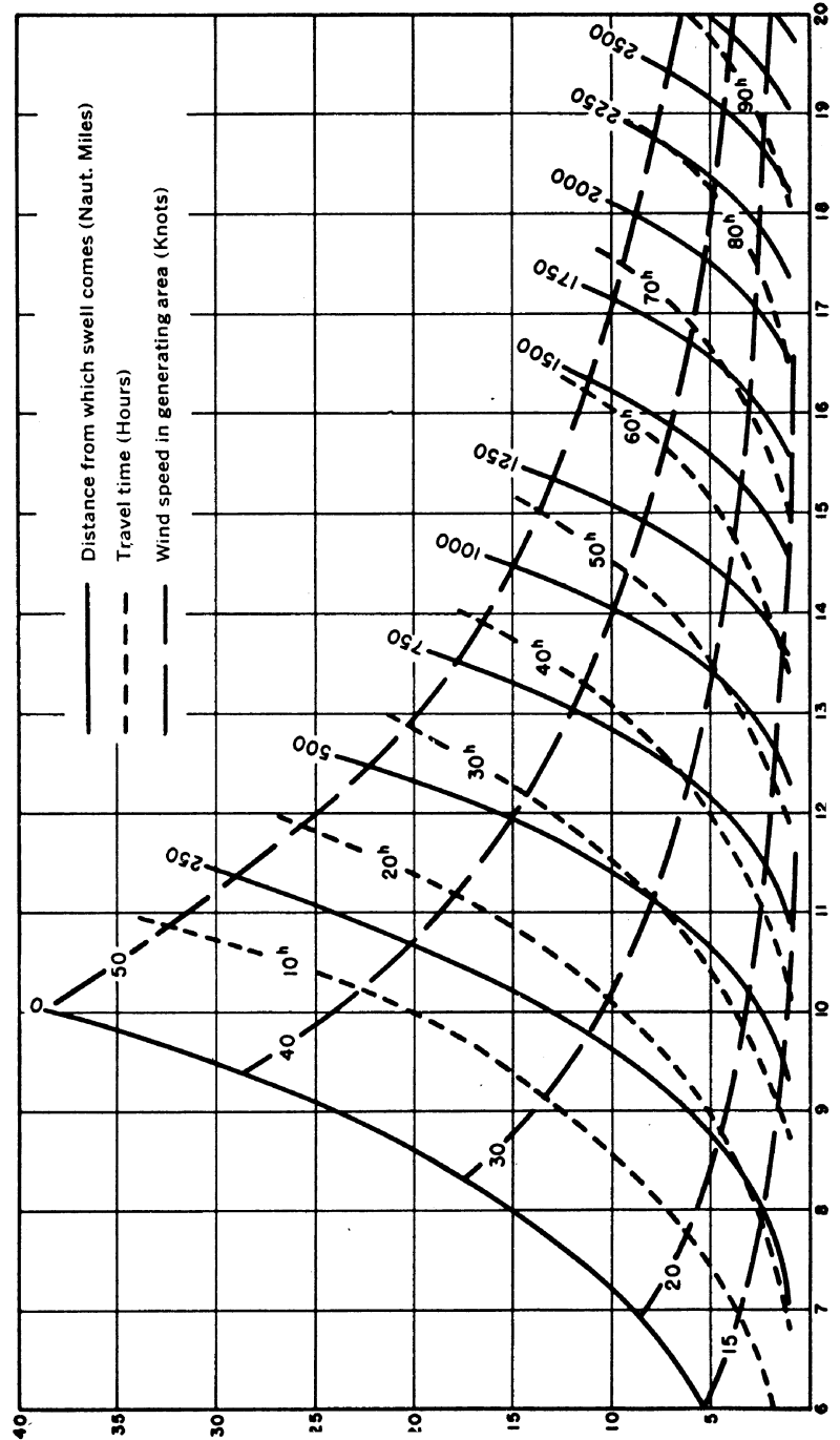 De afbeeldingen hieronder komen uit het zeemansboek "bowditch". Dit zijn diagrammen om hoogte van de golven te bepalen.